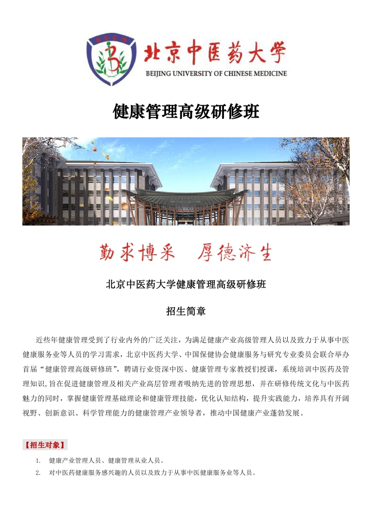 365best体育亚洲官网首届健康管理高级研修班招生简章