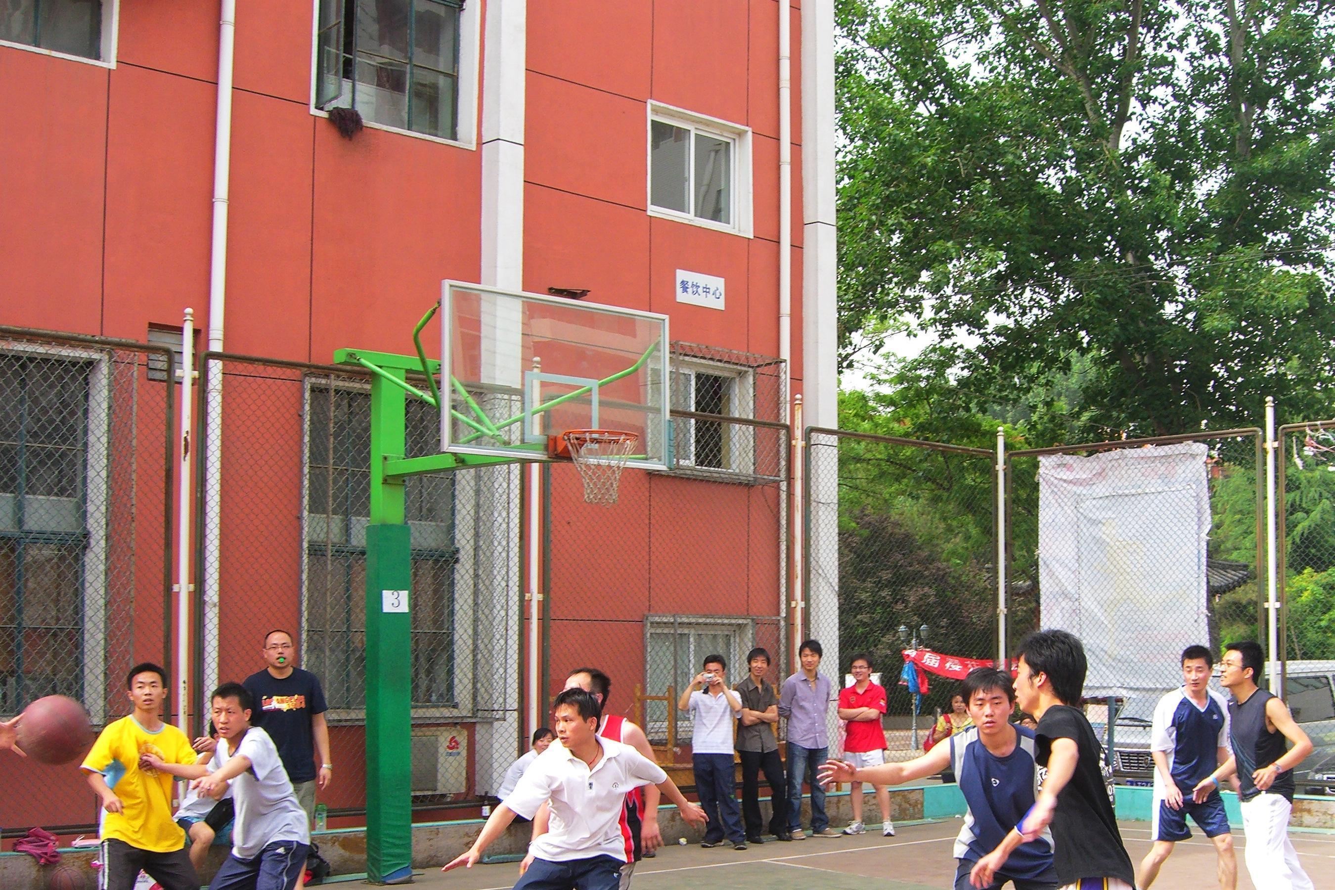 接下来的项目是篮球比赛,两队实力接近,双方队员都奋力拼抢,比分交替上升。每当本队队员拿球,拉拉队都会整齐响亮地喊出自己班的加油口号,而有精彩进球时,全场都会爆发雷鸣般的欢呼声。