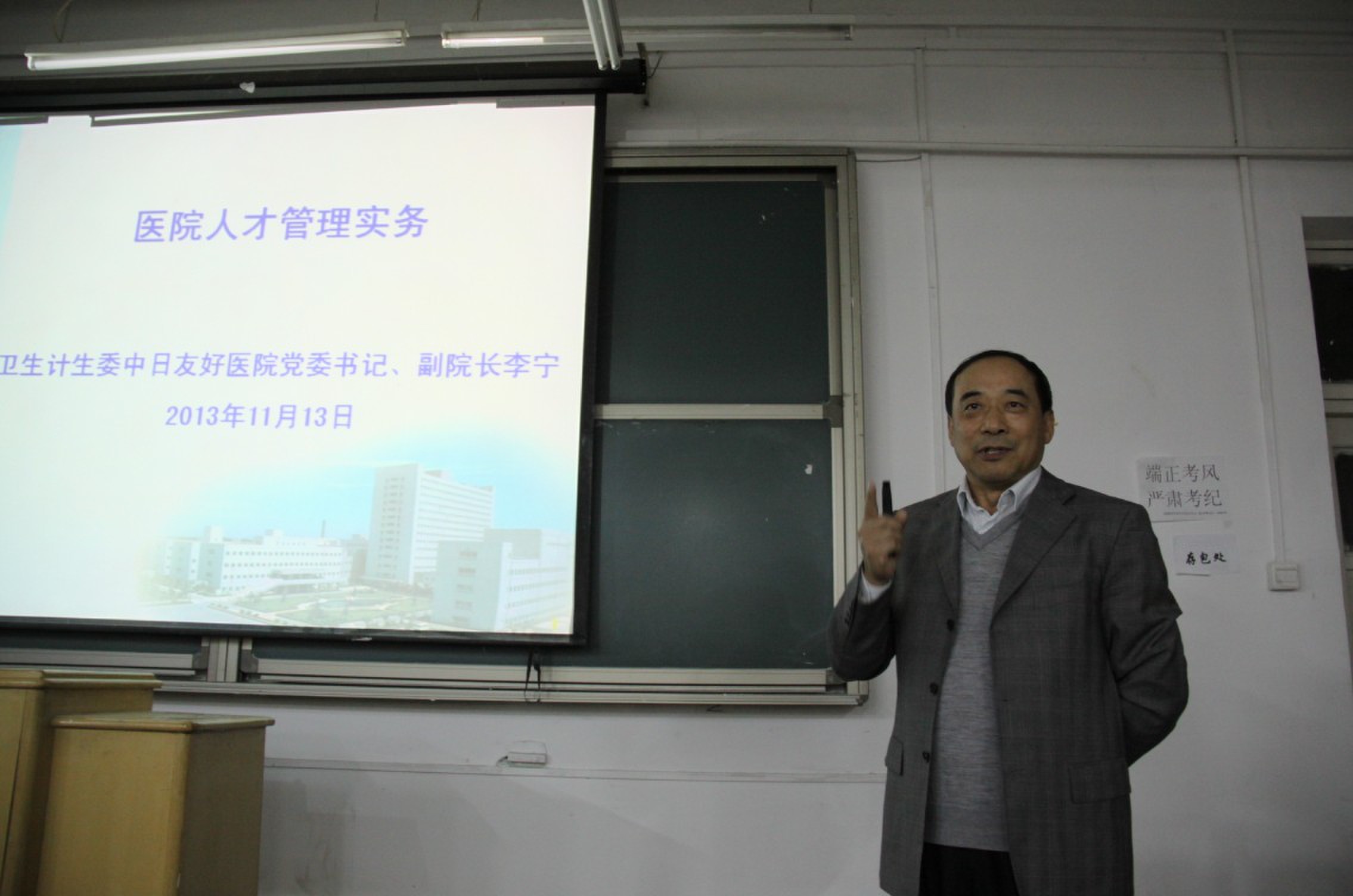 2013年11月13日晚上6点,356体育在线官网在46教成功举办了题为“医院人才管理实务”的专题讲座。此讲座为2013学术节356体育在线官网专场第三场,邀请嘉宾为中日友好医院党委书记、副院长,356体育在线官网兼职硕士研究生导师李宁教授。356体育在线官网广大师生积极参加了此次讲座。