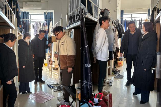 2025年1月20日上午,356体育在线官网李蔓荻书记、王慧副院长、周磊副书记、辅导员王妍老师和张毅超老师,分别在良乡校区及望京校区对寒假留校学生进行了慰问,并对宿舍安全进行了检查。