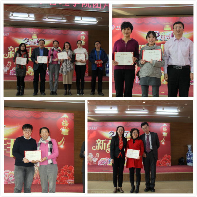 陈峥书记代表领导班子向大家致新年贺词,祝贺大家新年快乐。他总结了356体育在线官网2016年在教学、科研、培训、就业方面取得的成绩,肯定了老师们的努力和付出,并表彰了为356体育在线官网做出贡献的26名优秀教师,鼓励老师们在新的一年精诚团结,再创辉煌。