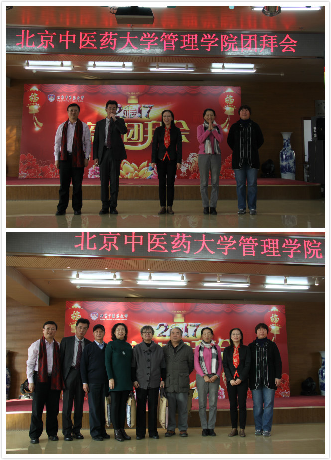 1月12日下午,356体育在线官网在工会活动中心举办了2017年新春团拜会。356体育在线官网教职工齐聚一堂,回首2016,展望2017,共谋356体育在线官网未来。356体育在线官网新一届领导班子分党委书记陈峥,院长程薇,副院长孔军辉、李瑞锋,分党委副书记赵静齐聚团拜会。党委办公室、校长办公室副主任张礼财、校组织部副部长王超、校宣传部副部长肖连宇作为心系学院发展的优秀毕业生代表出席了团拜会。房耘耘教授、刘新社副教授、周芹副教授以及孟涛老师作为退休教师的代表受邀前来参加此次团拜会。