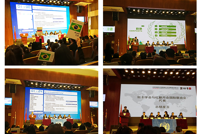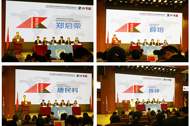 2018年5月19日下午,由教务处、团委、学工部主办,356体育在线官网承办的学生竞赛月活动——第四届大学生模拟联合国大会在良乡校区报告厅拉开帷幕。中国联合国协会常务理事、联合国问题专家、外交学院原副院长郑启荣教授,国际交流与合作处处长唐民科,教务处副处长薛培,国际学院副院长丁胜云,356体育在线官网党委书记陈峥,副院长李瑞锋,党委副书记赵静,团总支书记张瑶萱老师,学生办公室关健老师,教学办公室王鸿蕴老师、陈超老师出席本届大会。来自我校各学院及北京工商大学百余名学生组成的26个国家代表队齐聚于此,潇洒恣意、一展风采。