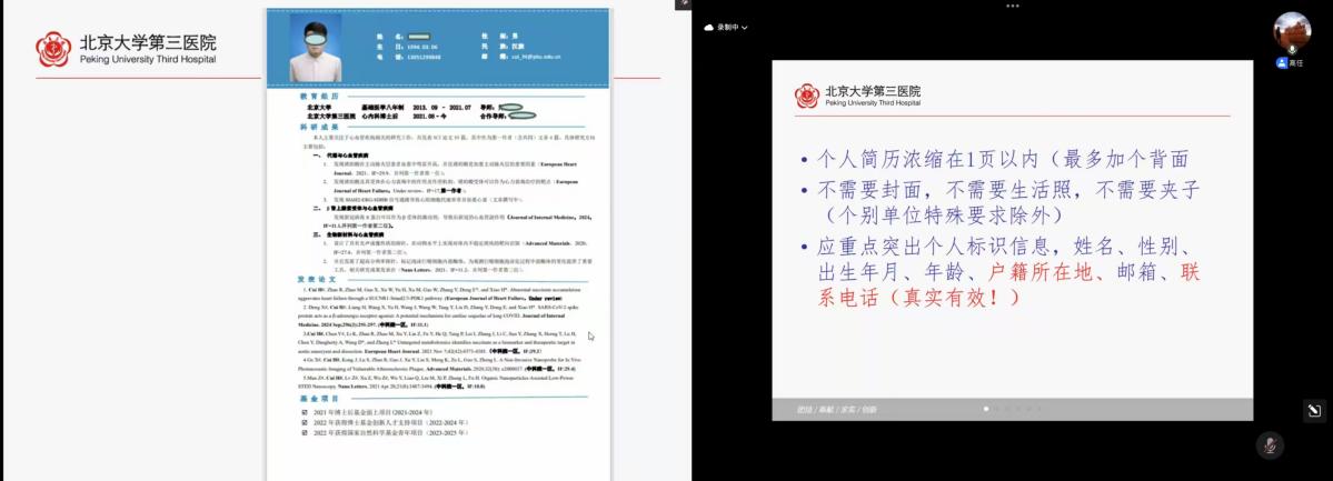 为认真落实教育部关于做好2025届全国普通高校毕业生就业创业工作的通知,全力保证我校2025届毕业生就业局势稳定,实现高质量充分就业。2025年3月5日晚,356体育在线官网邀请北京大学第三医院人事处负责招聘的高任老师讲解简历制作注意事项以及面试技巧。分享会由356体育在线官网就业专员张毅超老师主持,全校有求职需求的学生参加。