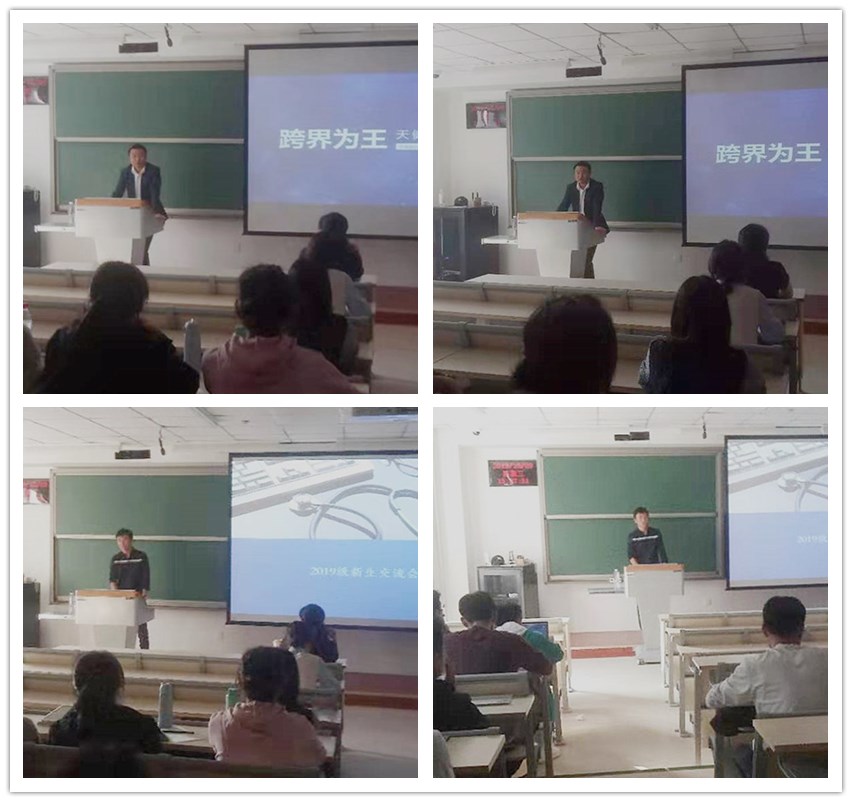 天健源达集团的郭强总监以“跨界为王”为主题展开演讲。郭强总监首先以幽默风趣的语言开场,启发同学们寻找自我价值,接着介绍了天健集团的成就及功勋成员,最后希望大家找准定位,选择道路,跨界为王。