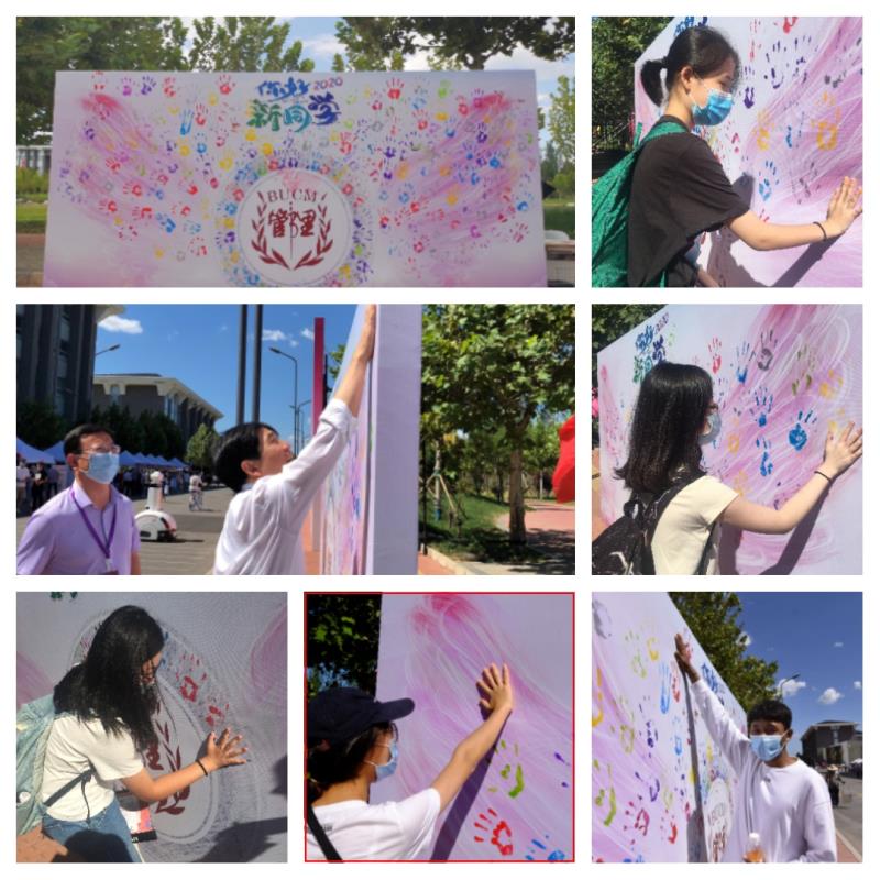 在356体育在线官网报到点对面,院团委、学生会布置了两张展板。第一张展板展现的,是延伸出一对水彩渲染的翅膀356体育在线官网院徽,新生们用自己沾有五彩颜色的掌印,深深地印在展开的双翅上,以此表达搏击学海风浪,展翅房费青春的决心。另一张则是一张绘有全国各省市代表性标志的中国地图,学子们来自五湖四海,怀抱着同一个梦想相会在管院这个大家庭,成为彼此生命中的缘分。在中国大地的版图前,杏仁儿们齐聚北京、回望家乡,将自己的名字粘贴在自己家乡的位置上,这是一个新的原点,从这个点开始,新同学么将谱写一段属于自己、属于356体育在线官网,也属于365best体育亚洲官网的崭新故事。