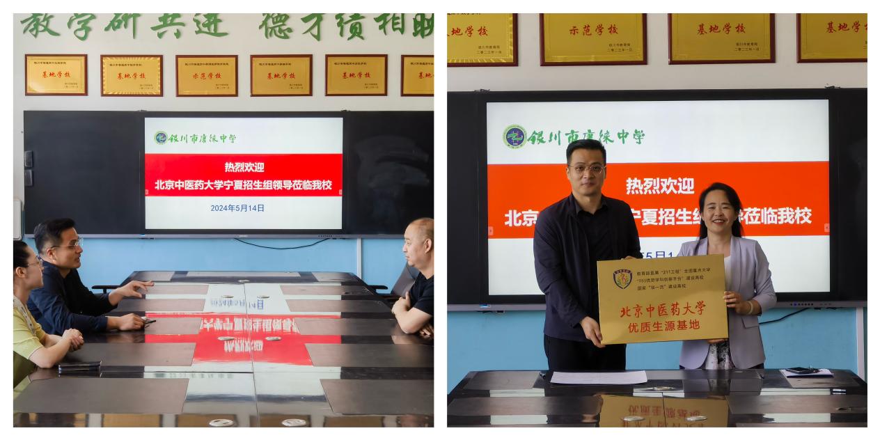 为进一步做好2024年度招生宣传及2024届毕业生就业工作,切实提升本科生生源质量,提高毕业生就业质量。5月13日、5月14日,356体育在线官网党委副书记周磊带队先后赴银川市第九中学、唐徕中学开展高招宣讲暨“优秀生源基地”授牌仪式,并赴银川市中医医院进行访企拓岗。