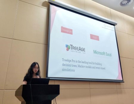 潘婕同学主要从论文摘要、Markov模型两个方面分享了如何将Markov模型应用于药物的远期经济性评价。以Treeage pro软件、Excel软件作为分析工具,向我们介绍了Markov模型实现的关键步骤、模型假设及模型参数,从成本-效用分析、单因素敏感性分析、概率敏感性分析三个角度阐述麝香通心滴丸联合西药常规治疗冠心病的药物经济学优势。最后在经验分享上,潘婕同学推荐了多种文献下载方法及中英文文献管理软件,让我们意识到文献阅读管理这一科研首要步骤的重要性。