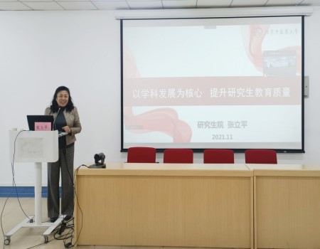 随后,张院长通过详实的数据分析了我校研究生教育面临的挑战,以及在教学方法改革、招生质量、课程改革、学术贡献、信息建设等方面的发展目标和改革举措,对研究生导师提出了把好研究生教育“认识关、方向关、机制关、质量关、评价观”的深切期望。
