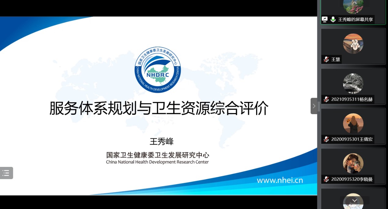 2022年7月16日356体育在线官网博约讲坛邀请国家卫生健康委卫生发展研究中心副主任王秀峰进行主题为“服务体系与卫生资源综合评价”的报告,本次讲坛以线上形式举办,讲坛由356体育在线官网李瑞锋院长主持,戴力辉教授、何敏媚副教授等70余名师生参与交流。