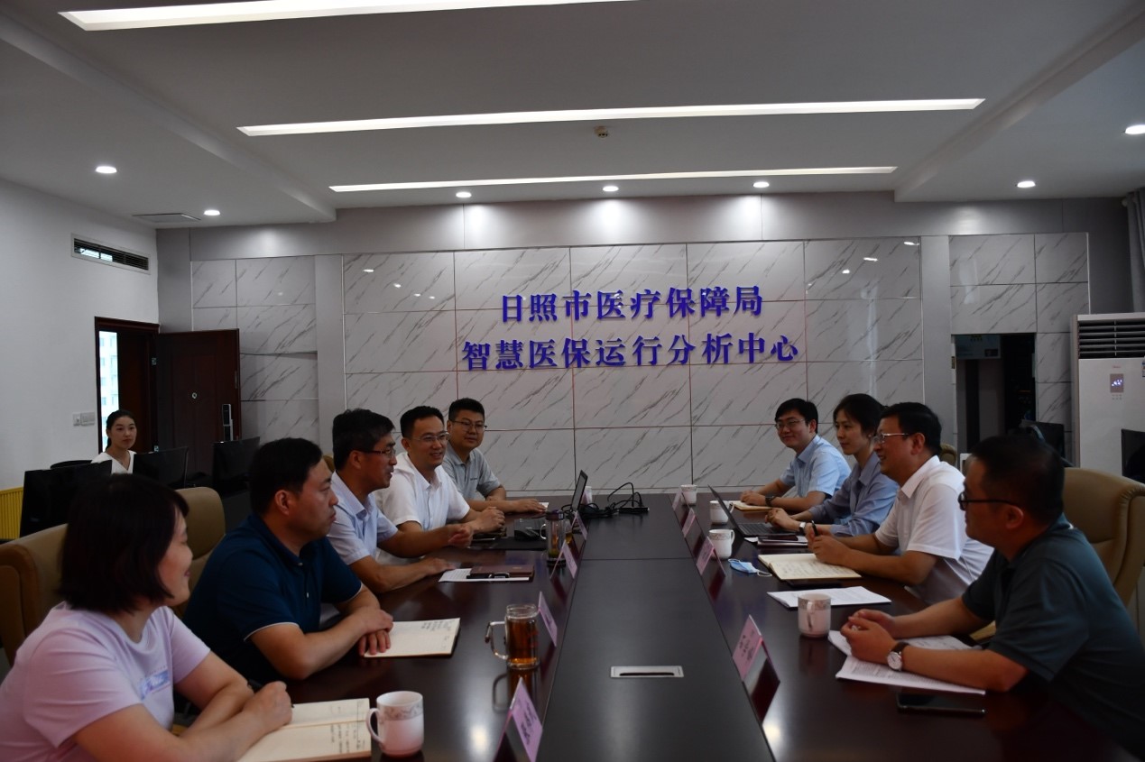 2022年7月29日下午,356体育在线官网院长李瑞锋教授、卫生财经与卫生政策教研室主任石学峰副教授以及孔国书博士一行赴山东省日照市医保局调研并开展科研基地合作洽谈。日照市副市长林彦芹、日照市医保局局长安丰堂、副局长宋震、医药服务管理科科长韩伟,泰康养老保险公司数据产品部总经理李佳、山东分公司健康保险市场部总经理张海参、日照区域中心总经理张伟武出席座谈会。