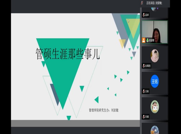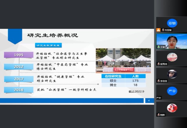 9月13日,356体育在线官网研究生会开展“新老生交流会”活动,活动采用线上和线下相结合的方式,356体育在线官网副院长王慧出席此次活动。2021级公共管理专业赵宏扬等四位同学作为分享嘉宾,分别就班级管理、日常生活、学习科研等方面进行分享。新老生交流会给新到来的同学搭建了朋辈学习交流的平台,为同学们树立了示范榜样。