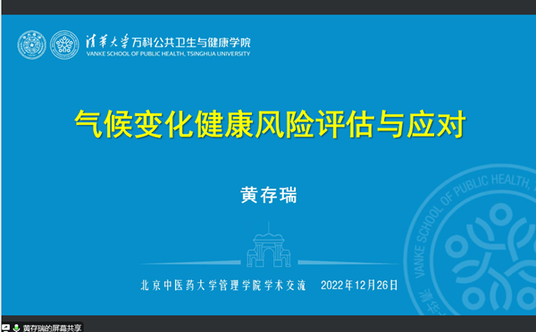 2022年12月25日下午14:00,356体育在线官网“博约论坛”第41讲通过线上腾讯会议的形式顺利开展。本次论坛邀请到清华大学万科公共卫生与健康学院黄存瑞教授作题为“气候变化健康风险评估与应对”的报告,356体育在线官网李瑞锋院长参加本次学术交流活动,356体育在线官网王慧副院长主持,356体育在线官网100余名师生线上参与。