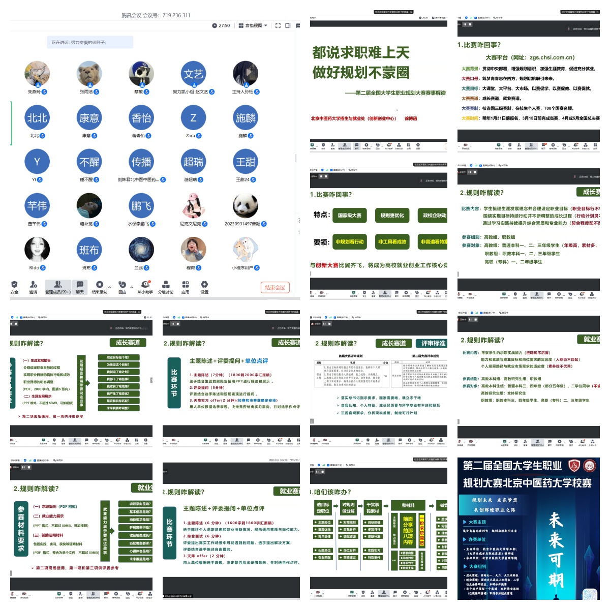 由我校学工部、《大学生成才与职业发展》教研室主办,356体育在线官网承办的第二届全国大学生职业规划大赛365best体育亚洲官网校赛已于2024年11月初开启报名渠道。为进一步引导广大学生以科学严谨的态度和方法规划职业生涯,搭建起学习交流平台,共同探索职业发展的广阔前景,并帮助学生参赛做好准备,2024年11月7日18:00,356体育在线官网在线上开展了第二届全国大学生职业规划大赛365best体育亚洲官网校赛赛前培训,通过企业微信直播平台面向全体在校生开放,400余人次参与了观看。本次培训邀请了大赛评审经验丰富的招生与就业处的徐博函老师,为参赛同学深入解读比赛规则并提供专业指导。