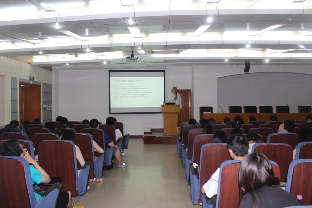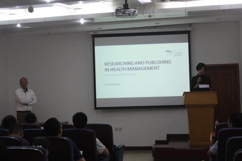 Hartmann教授围绕《实验研究在卫生管理研究中的应用与管理类SCI写作》,以自己的两项研究为例,为大家讲解了卫生管理领域的科研思路和步骤,包括提出问题、构建理论、实验验证等;此外,从文章架构、受众、期刊选择、综述研究等方面就国际期刊上论文发表进行了讲解,并与同学们交流了英语论文的写法和练习方法,并对同学们提出的相关问题进行了详细解答。Hartmann教授的精彩讲座博得了现场阵阵热烈的掌声。